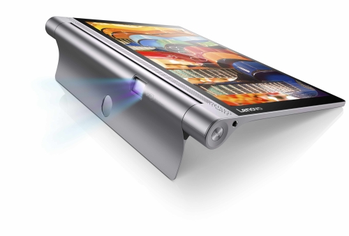 YOGA Tab 3 Pro A multimedia tablet with a built-in projector! It transforms a wall or ceiling into a brilliant 70″ screen. Enjoy a theater experience on the brilliant 10.1″ QHD display, and the integrated JBL® 4-speaker sound bar. Up to 18 hours of general use on a single charge.