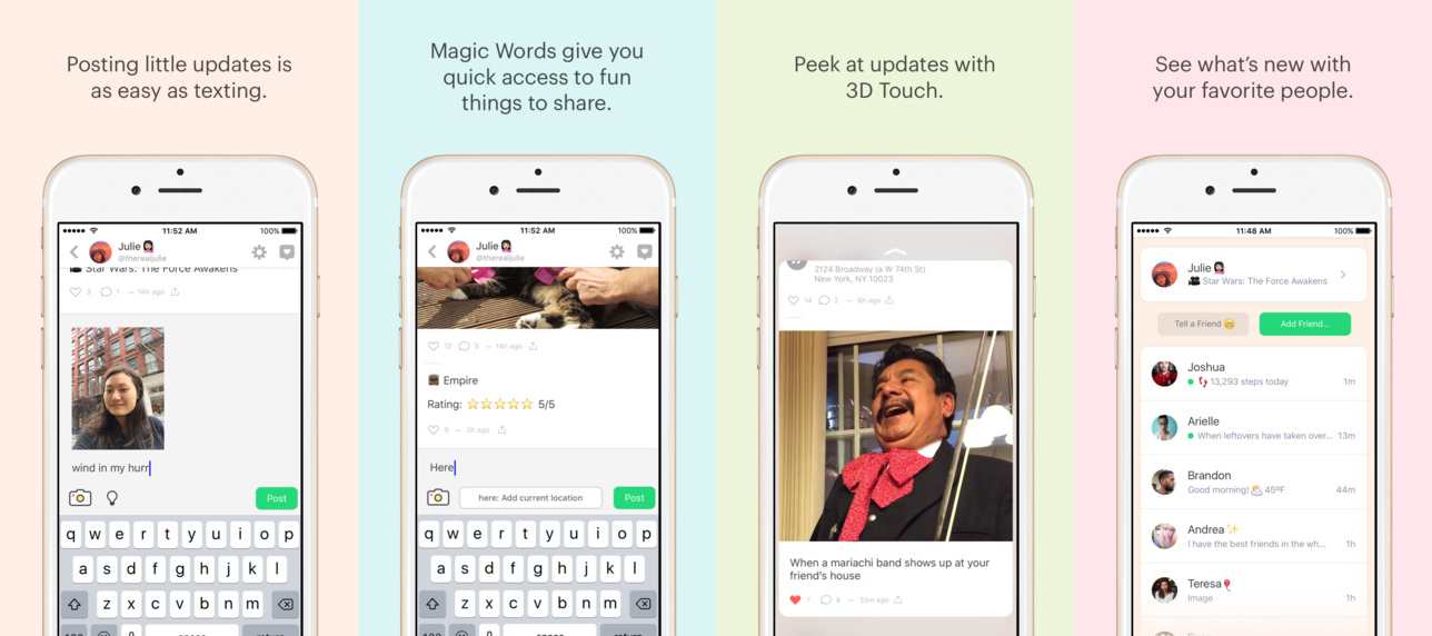 If you’ll recall, that was the last red-hot social media app, billed as the “anti-Facebook” for offering a very clean look and promising to keep your updates private. It attracted lots of attention last fall and hasn’t been heard from since. Will Peach meet the same fate? Hard to say. It’s fun and easy to use, plus the option to search for stuff like GIFs without leaving the app is really nice. The big concern here is what features does Peach offer (or will provide in the future) and make it unique in a really crowded space. Magic Words could be huge if more functions are supported (reserve a table at a restaurant then invite friends all within the app, for example).