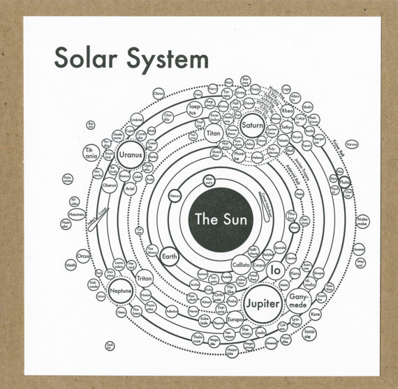 If your favorite traveler is dreaming big, here’s their new map. Letterpress solar system map, $23