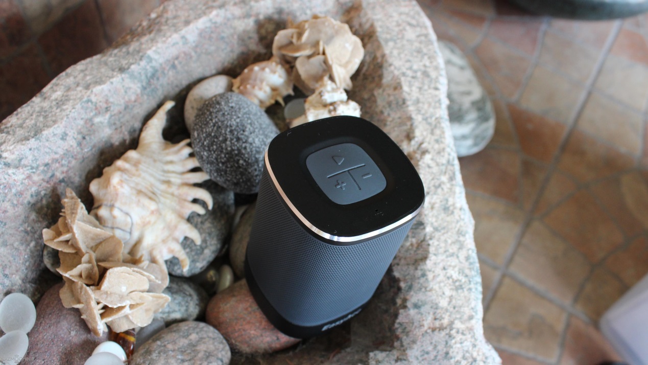 There’s also a shiny chrome trim at the top edges of the unit, giving off a neat contrast to the rest of the unit. An accessible Play button and volume control is located conveniently at the very top of the tin can speaker. To turn the unit on, an On/Off switch is located at the bottom rear side of the unit, next the the auxiliary and micro-USB charge.