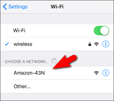 Choose Echo connected Wi-Fi, which will be connected and the same as “amazon-43n” above. The application should go straight to the configuration process. Only then should you start the Amazon application to begin the configuration.