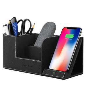 EasyAcc is not as big a name as Anker or Belkin, this wireless charging stand from it stands out for its creative design. It is designed more than a charger, but also a desk organizer. Stationary and even glass box can be housed next to this stand.