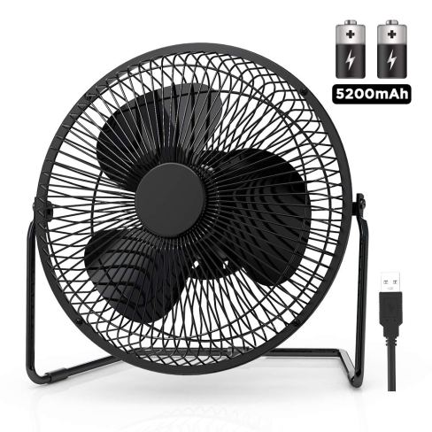 This desk fan is up to 8 inches, a little big for some consumers. But on the other hand, it means bigger fan blades and stronger wind. With this fan, you will have 4 choices, 1200 rpm for personal cooling; the highest speed 1800 for hot summers and multiple people. Furthermore, the 5200mAh battery is large enough to offer up to 16 hours of continuous wireless use. Metal frames ensure a steady placement, while the 360° rotation head enables us to cope with multiple situations.