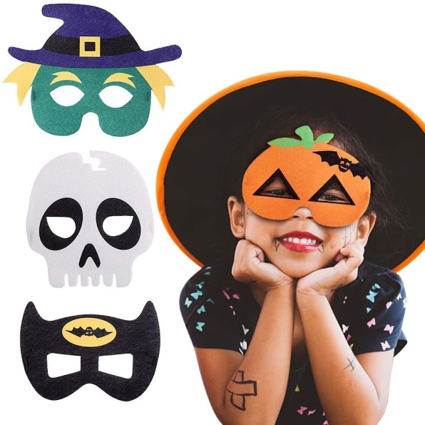 - 🎃【Cool Designs】We have four eye masks that are great for trick-or-treating and horror-themed parties: orange pumpkin, black bat, green witch, white skull. Get what your kids need for dressing up and immerse everyone into Halloween fun!