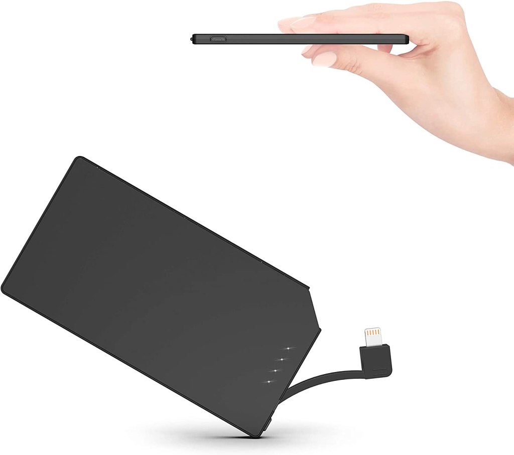 TNTOR Ultra Thin Power Bank with Built-in Lightning Cable