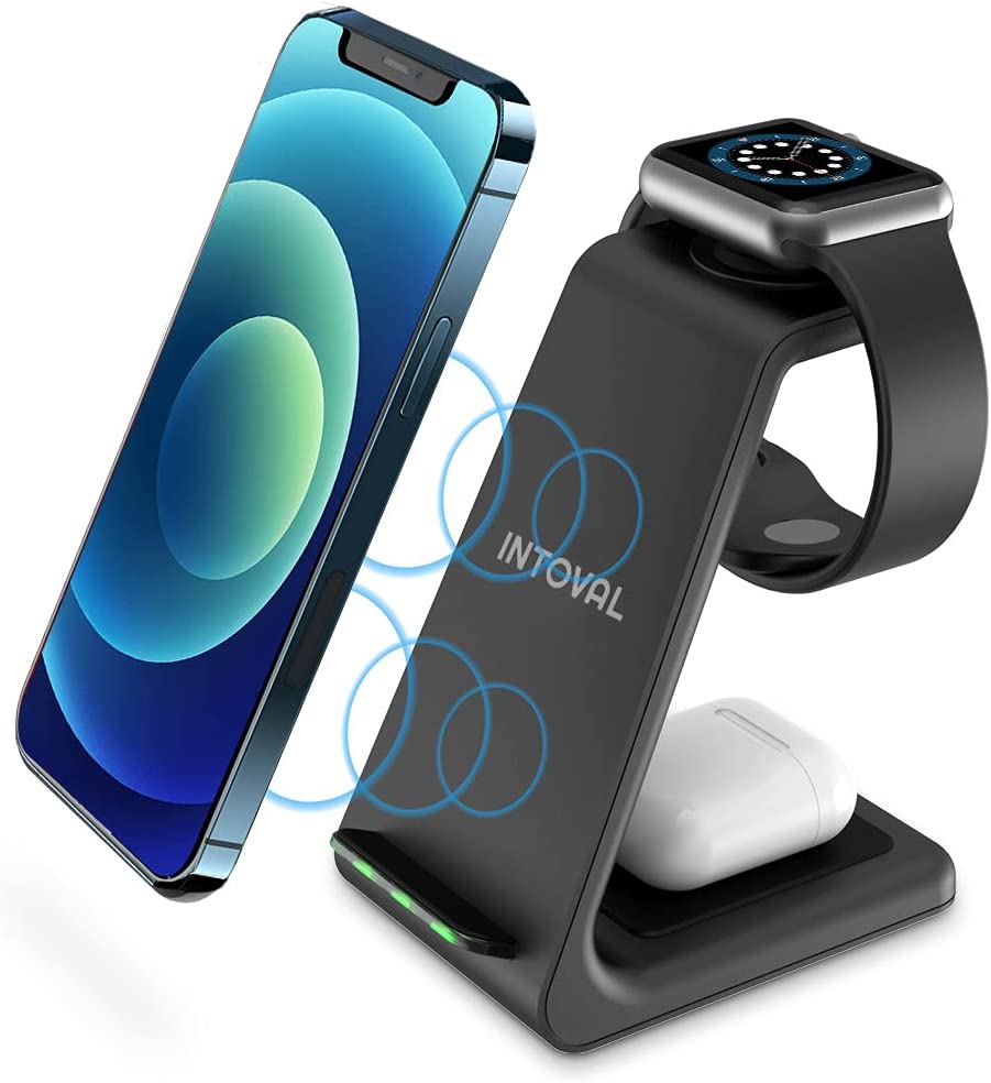 - 【Latest upgrade】The Qi-certified wireless charger stand with upgraded design and internal chip ensures safe and fast wireless charging. One charging device for your iPhone, iWatch, and Airpods. Suitable for home and office usage.